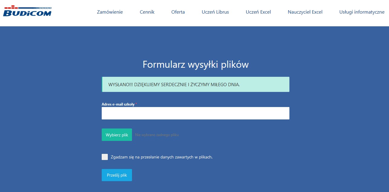 …pliki są wysyłane na serwer, proszę poczekać na wyświetlenie komunikatu, który potwierdzi prawidłowo przesłane pliki.